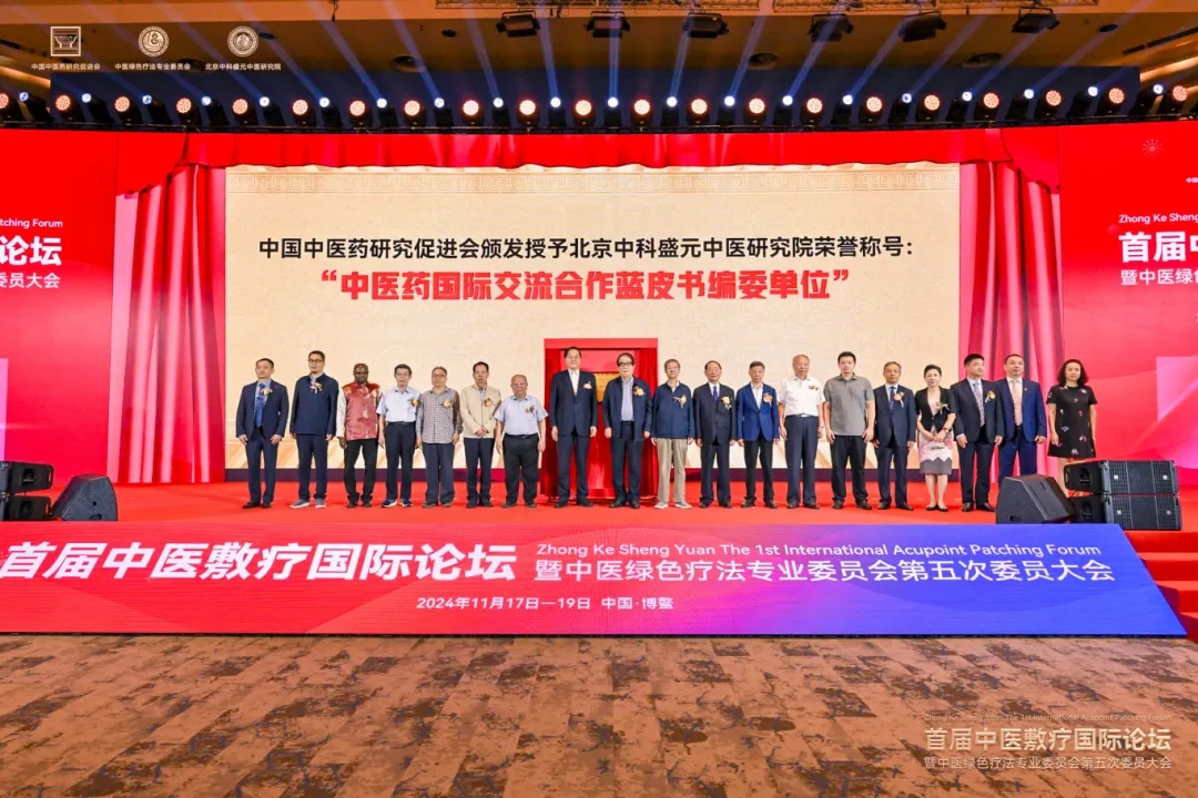 中国中医药研究促进会向北京中科盛元中医研究院颁发了“中医药国际交流合作蓝皮书编委单位”铜牌,以期共同推进中医药国际合作,促进中医敷疗的传承发展。