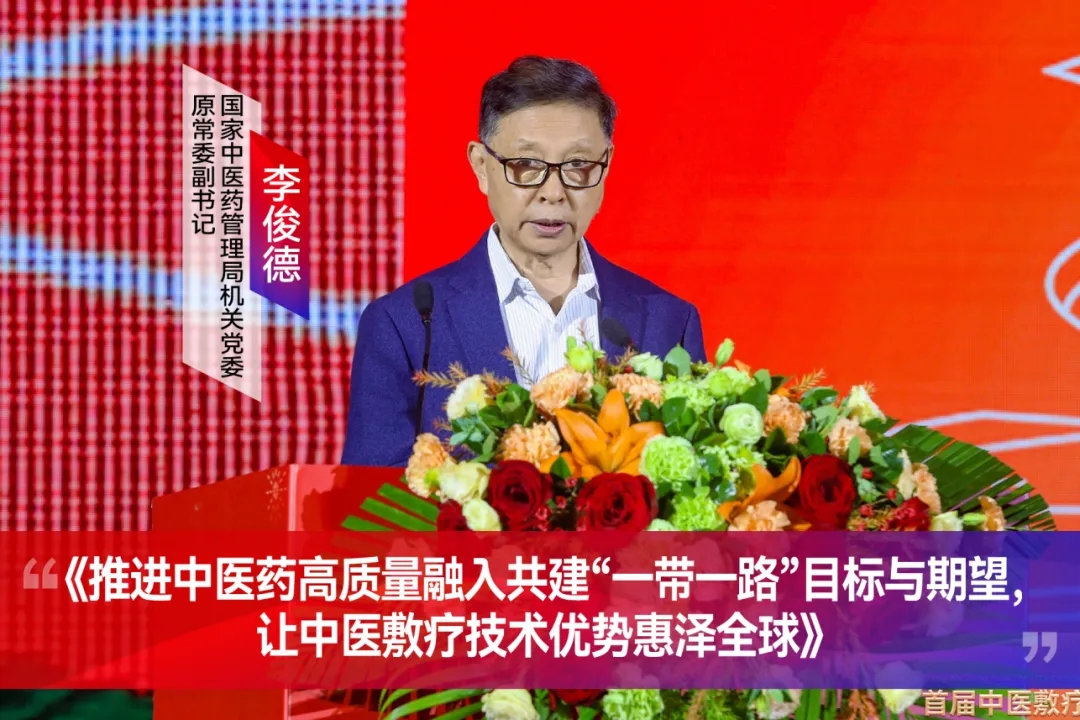 在“世界的中医敷疗”主论坛上,中华中医药学会原副会长兼秘书长李俊德教授发表了主题讲话,深入探讨了中医药的高质量发展以及中医敷疗技术的国际化进程。